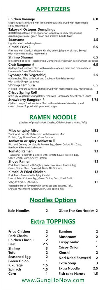 Welcome to Gung Ho - Tulsa Hills, a vibrant new ramen spot in Tulsa that elevates your dining experience with a playful twist on traditional Japanese cuisine. Located at 7547 S Olympia Ave, this eatery specializes in a diverse range of ramen bowls, including their standout Miso Ramen and Tonkotsu Ramen, each boasting rich, flavorful broths and quality toppings that will tantalize your taste buds.